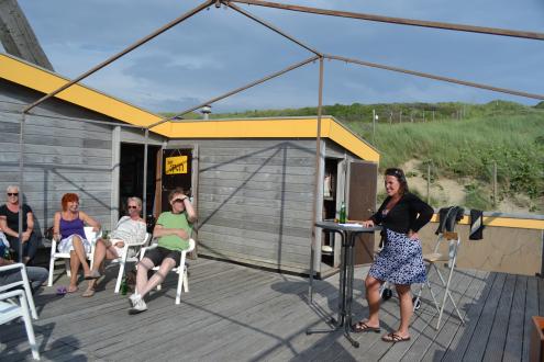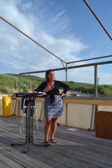 Toen er genoeg drank in de man/vrouw zat zijn we begonnen met de veiling van zeilspullen. Dat verliep erg gemoedelijk en al gauw ging men om prachtexemplaren van retro trapezebroeken elkaar over bieden. Er waren echt leuke spullen bij, er zijn prima spullen van eigenaar gewisseld en de baten komen ten goede van de club !! De totale opbrengst van de veiling was 335 euro. Daarna hebben we nog een heerlijke BBQ gehad. Lorraine, de vrouw van Bert had heerlijke salades gemaakt en zoals altijd had Mathijs, geholpen door Marcel een heerlijke vis en zalige sateh klaar. Ook hier hadden we een meeropbrengst zodat de dag totaal 390 euro heeft opgeleverd en vele enthousiaste mensen.