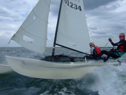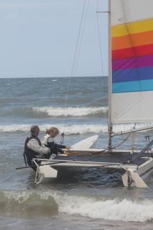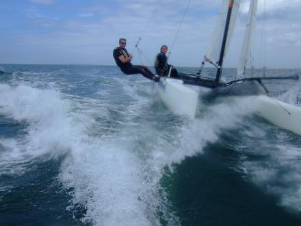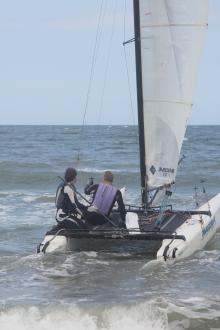 Zaterdag 30 juni was een uitgelezen dag om nieuwe mensen enthousiast te maken voor het catamaranzeilen. Er lagen rond 13.00 uur wel 10 boeten van leden aan de kantlijn die allemaal wel iemand mee wilde nemen het ruime sop op. Lekker windje, zon en niet te veel branding.