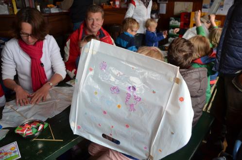 Het begon als een koude dag met regen, de harde regen stopte maar de kou bleef. Geen van de 15 kinderen klaagde over het weer. Onder de bezielende leiding van Mathijs werden er bouwpakketjes voor de wat kleineren in elkaar gezet. De iets ouderen werd door hem geleerd om van een plastic tas een vlieger te maken.Hierna werden ze opgelaten. Leuk om te zien hoe een tweejarige met een eigen vlieger op het strand staat. Tijdens het vliegeren ging onze chef-kok Nico Dijkhuizen pannenkoeken bakken. Ondanks het weer was het een succes te noemen zeker gezien de recaties van kinderen en ouders. Een woord van dank aan Martin Salet en Astrid Davidse die bardienst hadden en een geweldige ondersteuning vormden. Meer foto's komen nog op de site.