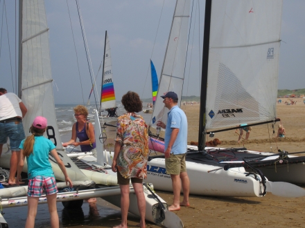 Zaterdag was er een open dag, waar geinteresseerden een keer konden meevaren met een catamaran. De omstandigheden waren ideaal om het eens te proberen: windkracht 2-3, zon, geen branding. Bijzonder geslaagd dus. Bedankt voor alle booteigenaren die hun boot ter beschikking hebben gesteld, en natuurlijk ook veel dank voor de activiteiten- en sooscommissie voor het regelen van dit alles.