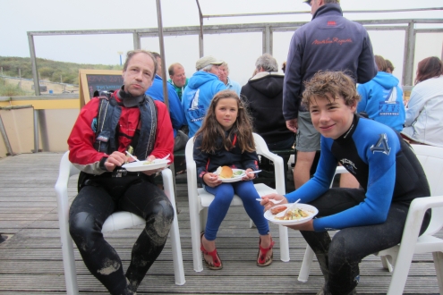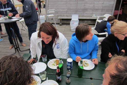 Het werd een tumulteuze dag: met vereende krachten werd de jumbo te water gelaten en de boeien uitgelegd, nadat er alleen Eline als wedstrijdleider was ingedeeld, die alles zonder schipper en opstapper zou moeten doen. Gelukkig wilde Nick assisteren. Alles gereed, om 13 uur werd er door 8 boten gestart. De stroom dreef vier boten te vroeg over de start, waarna getoeterd. Algemene terugroep? Of individueel? Het veld was verdeeld, met een aantal boten die doorvoeren, en een aantal boten die voor de start 5 minuten later gingen. Kortom: verwarring, het bleek een algemene terugroep. De 4 boten die door waren gevaren hadden een ronde te weinig gevaren, behalve Otto en Nicolien, die zo uitgekookt waren om een extra ronde te varen, toen ze zagen dat ze toch al achter Erik en Willemijn zouden finishen. Dat leverde een 4e plek ipv een dnf op!