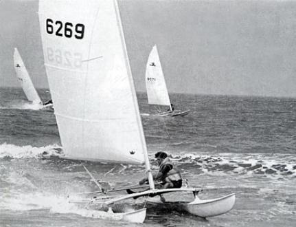 Engeland, met veel meer zout dan zoet water, had traditioneel veel kleine bootjes langs de kust en men was minder belast met traditionele opvattingen over zeilen dan in Nederland. Daar werd er al in de 50er jaren met nieuwe concepten geexperimenteerd. In 1956 kwamen de gebroeders Roland en Francis Prout met hun eerste Shearwater, een 5 meter lange cat die bij de speedtrials in Cowes vriend en vijand verraste door alles te winnen. Aart van der Stighel, ook iemand die altijd was geinteresseerd in nieuwe zaken, introduceerde midden 60er jaren de nieuwe Shearwater op de HISWA. Maar de Nederlandse zeiler was er nog niet rijp voor: wat de boer niet kent, vreet ie niet. In Amerika, het land van vele vernieuwingen, was ene Hobie Alter bezig met een surfcat, hetgeen in 1968 resulteerde in de Hobie Cat 14; de boot die het kustzeilen zou gaan veranderen.